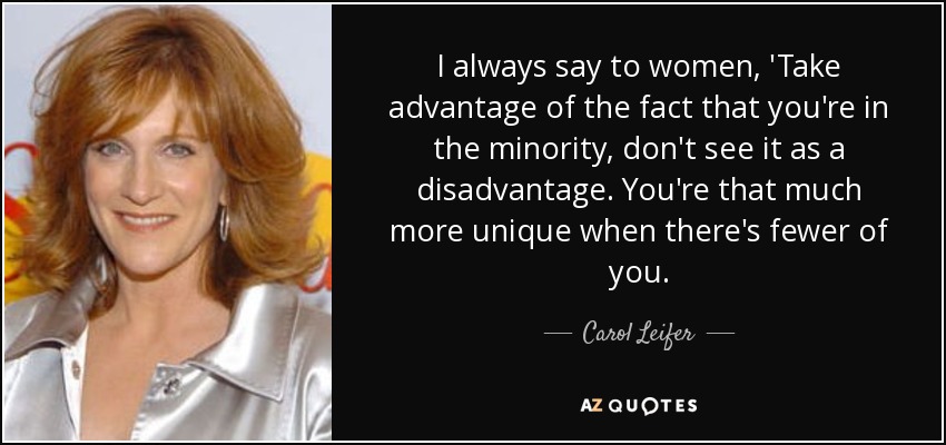 I always say to women, 'Take advantage of the fact that you're in the minority, don't see it as a disadvantage. You're that much more unique when there's fewer of you.