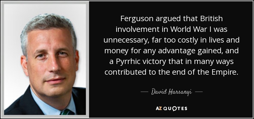 Ferguson argued that British involvement in World War I was unnecessary, far too costly in lives and money for any advantage gained, and a Pyrrhic victory that in many ways contributed to the end of the Empire.