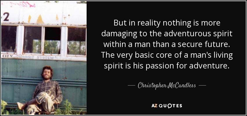 But in reality nothing is more damaging to the adventurous spirit within a man than a secure future. The very basic core of a man's living spirit is his passion for adventure.