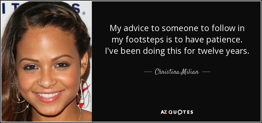 My advice to someone to follow in my footsteps is to have patience. I've been doing this for twelve years.