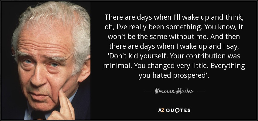 There are days when I'll wake up and think, oh, I've really been something. You know, it won't be the same without me. And then there are days when I wake up and I say, 'Don't kid yourself. Your contribution was minimal. You changed very little. Everything you hated prospered'.