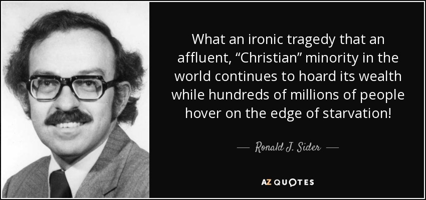 What an ironic tragedy that an affluent, “Christian” minority in the world continues to hoard its wealth while hundreds of millions of people hover on the edge of starvation!
