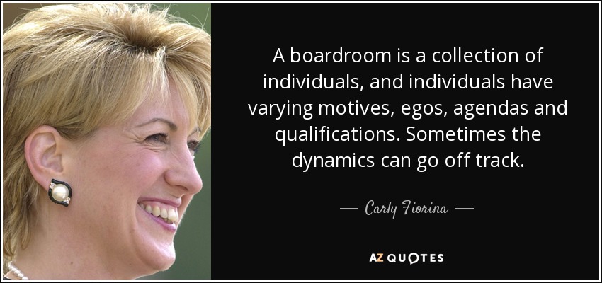 A boardroom is a collection of individuals, and individuals have varying motives, egos, agendas and qualifications. Sometimes the dynamics can go off track.