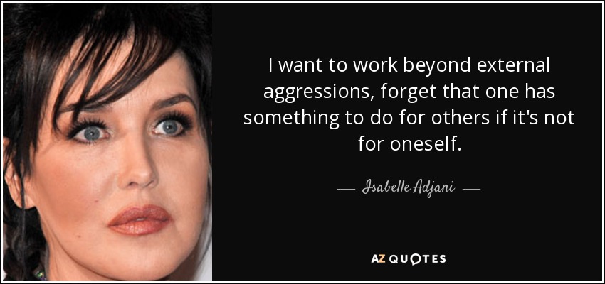 I want to work beyond external aggressions, forget that one has something to do for others if it's not for oneself.