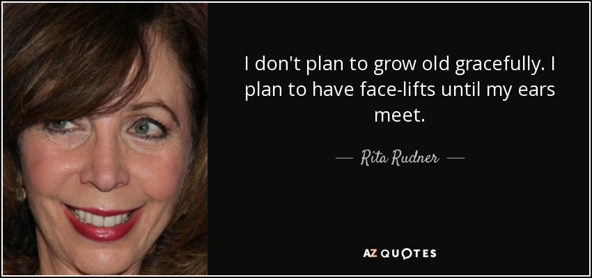I don't plan to grow old gracefully. I plan to have face-lifts until my ears meet.