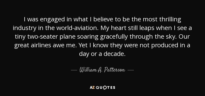 I was engaged in what I believe to be the most thrilling industry in the world-aviation. My heart still leaps when I see a tiny two-seater plane soaring gracefully through the sky. Our great airlines awe me. Yet I know they were not produced in a day or a decade.