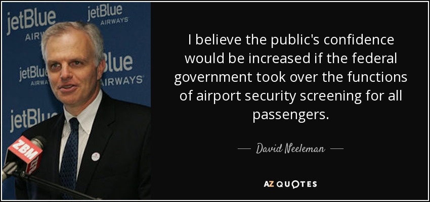 I believe the public's confidence would be increased if the federal government took over the functions of airport security screening for all passengers.