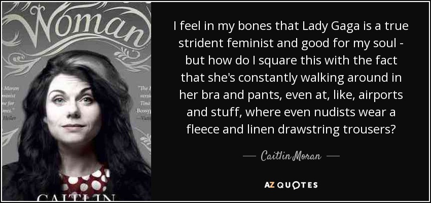 I feel in my bones that Lady Gaga is a true strident feminist and good for my soul - but how do I square this with the fact that she's constantly walking around in her bra and pants, even at, like, airports and stuff, where even nudists wear a fleece and linen drawstring trousers?