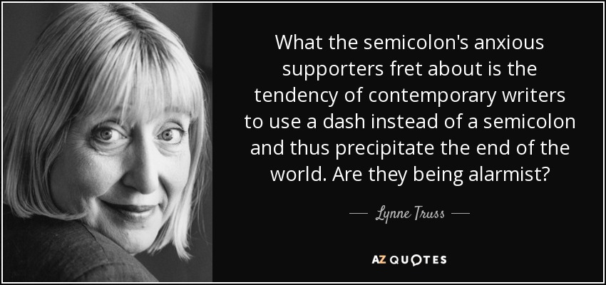What the semicolon's anxious supporters fret about is the tendency of contemporary writers to use a dash instead of a semicolon and thus precipitate the end of the world. Are they being alarmist?