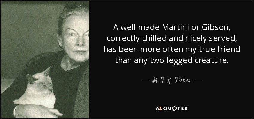 A well-made Martini or Gibson, correctly chilled and nicely served, has been more often my true friend than any two-legged creature.