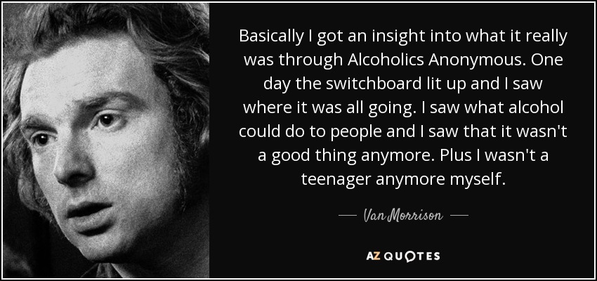 Basically I got an insight into what it really was through Alcoholics Anonymous. One day the switchboard lit up and I saw where it was all going. I saw what alcohol could do to people and I saw that it wasn't a good thing anymore. Plus I wasn't a teenager anymore myself.