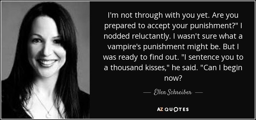 I'm not through with you yet. Are you prepared to accept your punishment?" I nodded reluctantly. I wasn't sure what a vampire's punishment might be. But I was ready to find out. "I sentence you to a thousand kisses," he said. "Can I begin now?