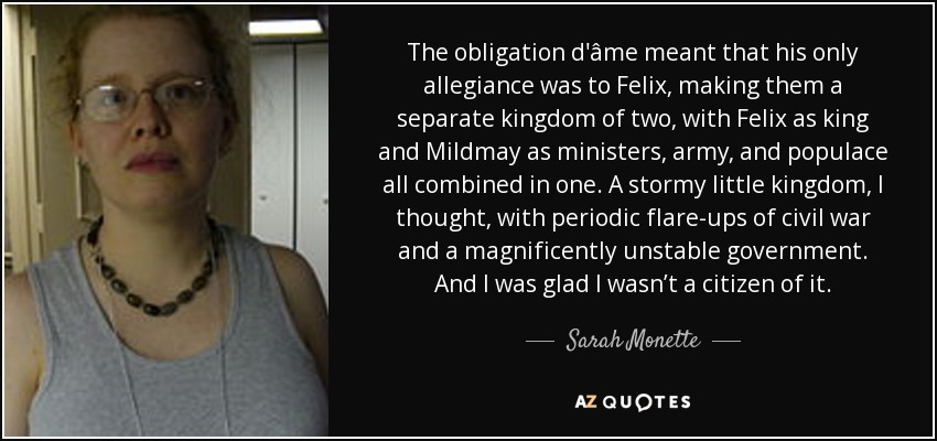 The obligation d'âme meant that his only allegiance was to Felix, making them a separate kingdom of two, with Felix as king and Mildmay as ministers, army, and populace all combined in one. A stormy little kingdom, I thought, with periodic flare-ups of civil war and a magnificently unstable government. And I was glad I wasn’t a citizen of it.