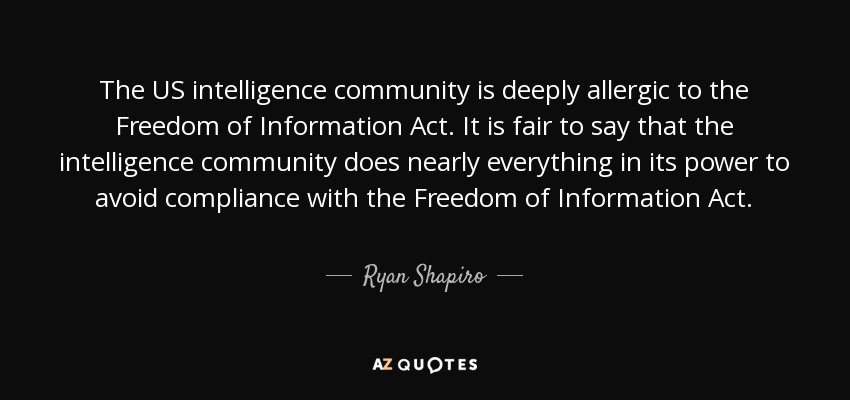 The US intelligence community is deeply allergic to the Freedom of Information Act. It is fair to say that the intelligence community does nearly everything in its power to avoid compliance with the Freedom of Information Act.