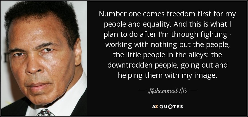 Number one comes freedom first for my people and equality. And this is what I plan to do after I'm through fighting - working with nothing but the people, the little people in the alleys: the downtrodden people, going out and helping them with my image.