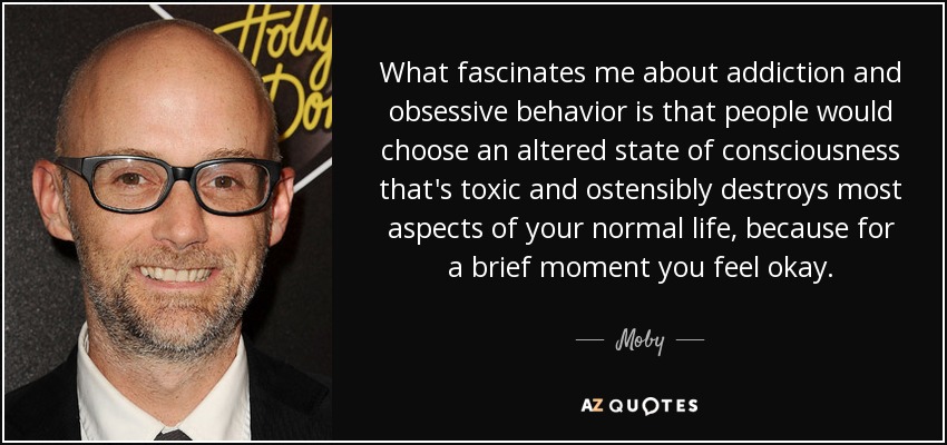 What fascinates me about addiction and obsessive behavior is that people would choose an altered state of consciousness that's toxic and ostensibly destroys most aspects of your normal life, because for a brief moment you feel okay.