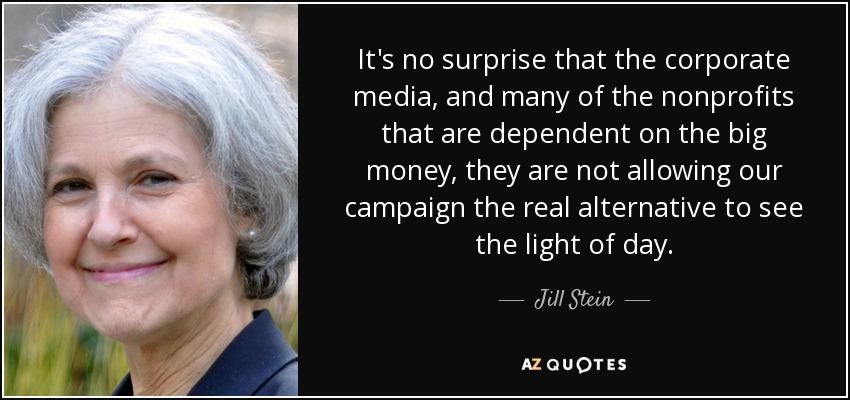 It's no surprise that the corporate media, and many of the nonprofits that are dependent on the big money, they are not allowing our campaign the real alternative to see the light of day.
