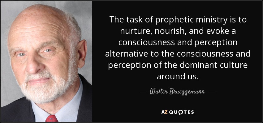 The task of prophetic ministry is to nurture, nourish, and evoke a consciousness and perception alternative to the consciousness and perception of the dominant culture around us.
