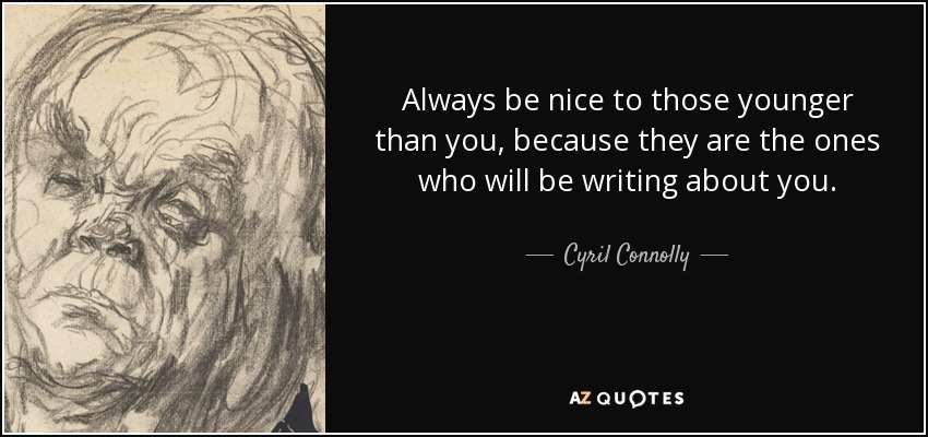 Always be nice to those younger than you, because they are the ones who will be writing about you.