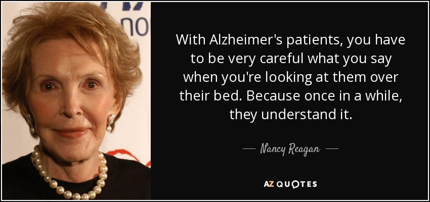 With Alzheimer's patients, you have to be very careful what you say when you're looking at them over their bed. Because once in a while, they understand it.