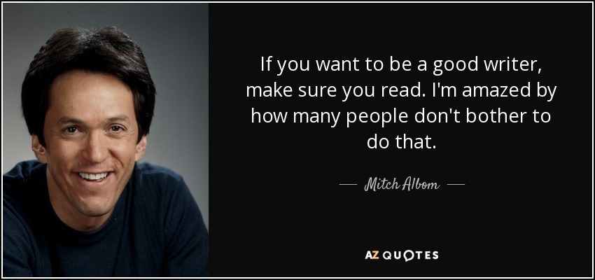 If you want to be a good writer, make sure you read. I'm amazed by how many people don't bother to do that.