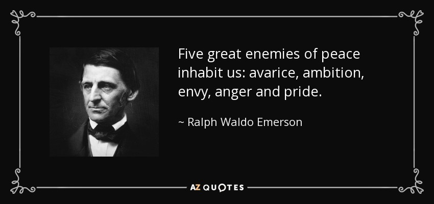 Five great enemies of peace inhabit us: avarice, ambition, envy, anger and pride.