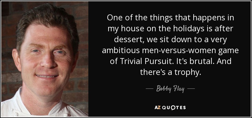 One of the things that happens in my house on the holidays is after dessert, we sit down to a very ambitious men-versus-women game of Trivial Pursuit. It's brutal. And there's a trophy.