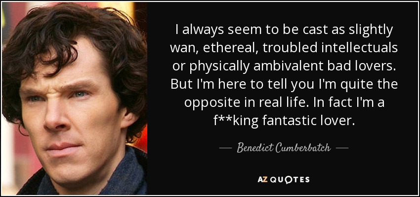 I always seem to be cast as slightly wan, ethereal, troubled intellectuals or physically ambivalent bad lovers. But I'm here to tell you I'm quite the opposite in real life. In fact I'm a f**king fantastic lover.