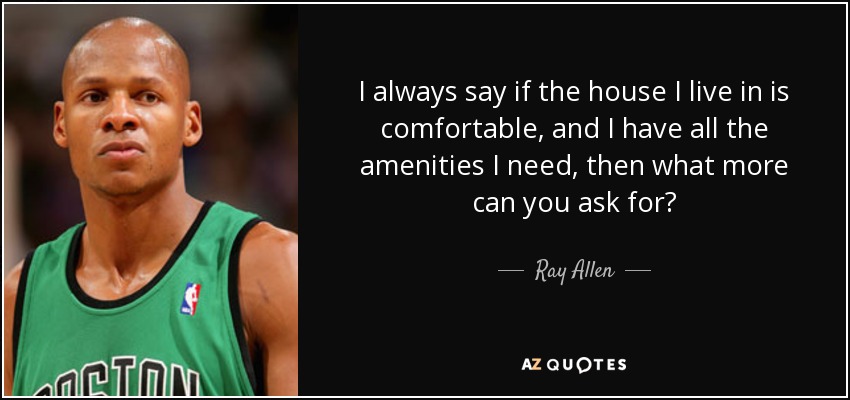 I always say if the house I live in is comfortable, and I have all the amenities I need, then what more can you ask for?