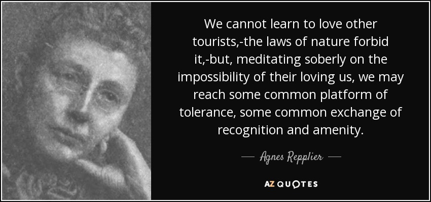 We cannot learn to love other tourists,-the laws of nature forbid it,-but, meditating soberly on the impossibility of their loving us, we may reach some common platform of tolerance, some common exchange of recognition and amenity.