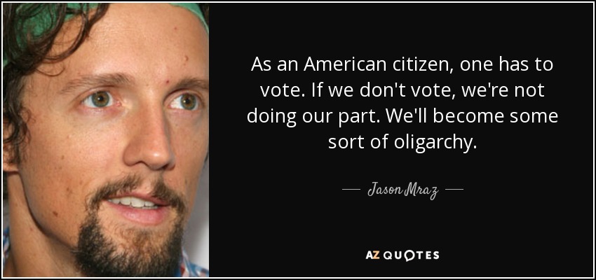 As an American citizen, one has to vote. If we don't vote, we're not doing our part. We'll become some sort of oligarchy.