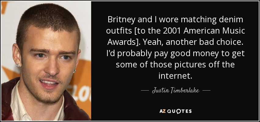 Britney and I wore matching denim outfits [to the 2001 American Music Awards]. Yeah, another bad choice. I'd probably pay good money to get some of those pictures off the internet.