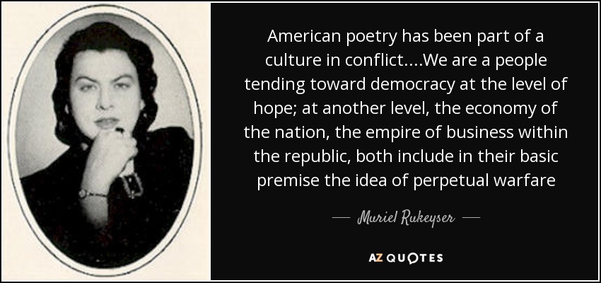 American poetry has been part of a culture in conflict....We are a people tending toward democracy at the level of hope; at another level, the economy of the nation, the empire of business within the republic, both include in their basic premise the idea of perpetual warfare