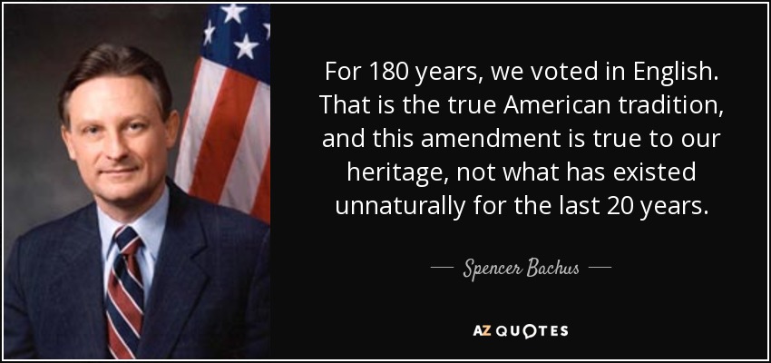 For 180 years, we voted in English. That is the true American tradition, and this amendment is true to our heritage, not what has existed unnaturally for the last 20 years.