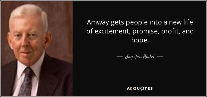 Amway gets people into a new life of excitement, promise, profit, and hope.