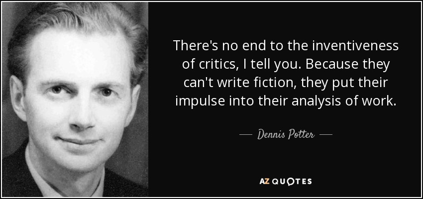 There's no end to the inventiveness of critics, I tell you. Because they can't write fiction, they put their impulse into their analysis of work.