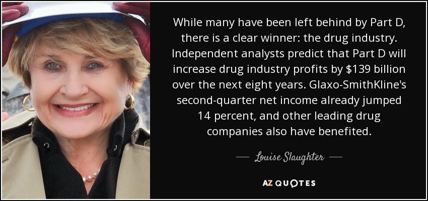 While many have been left behind by Part D, there is a clear winner: the drug industry. Independent analysts predict that Part D will increase drug industry profits by $139 billion over the next eight years. Glaxo-SmithKline's second-quarter net income already jumped 14 percent, and other leading drug companies also have benefited.