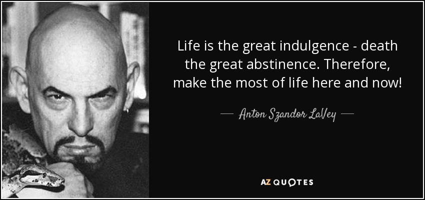 Life is the great indulgence - death the great abstinence. Therefore, make the most of life here and now!