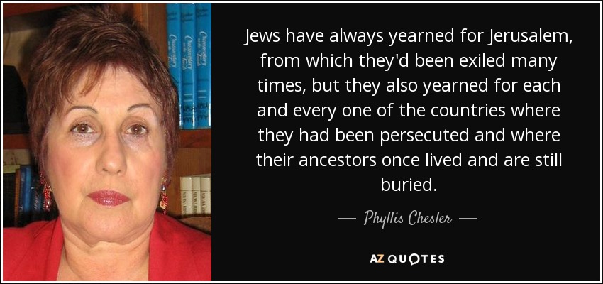 Jews have always yearned for Jerusalem, from which they'd been exiled many times, but they also yearned for each and every one of the countries where they had been persecuted and where their ancestors once lived and are still buried.