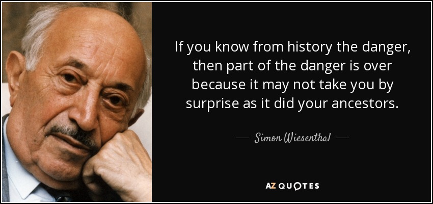 If you know from history the danger, then part of the danger is over because it may not take you by surprise as it did your ancestors.