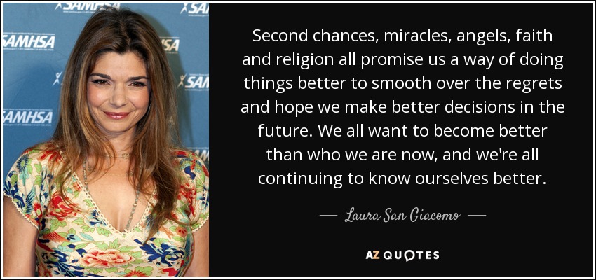 Second chances, miracles, angels, faith and religion all promise us a way of doing things better to smooth over the regrets and hope we make better decisions in the future. We all want to become better than who we are now, and we're all continuing to know ourselves better.
