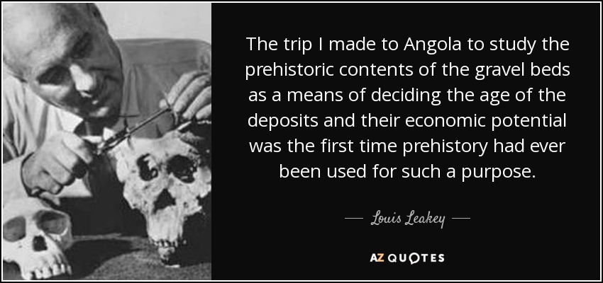 The trip I made to Angola to study the prehistoric contents of the gravel beds as a means of deciding the age of the deposits and their economic potential was the first time prehistory had ever been used for such a purpose.