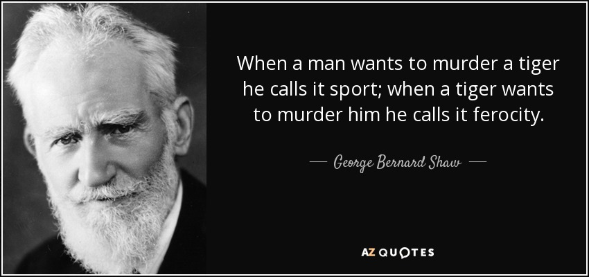 When a man wants to murder a tiger he calls it sport; when a tiger wants to murder him he calls it ferocity.