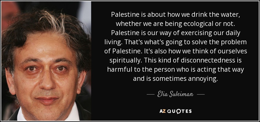 Palestine is about how we drink the water, whether we are being ecological or not. Palestine is our way of exercising our daily living. That's what's going to solve the problem of Palestine. It's also how we think of ourselves spiritually. This kind of disconnectedness is harmful to the person who is acting that way and is sometimes annoying.