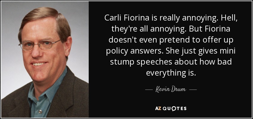 Carli Fiorina is really annoying. Hell, they're all annoying. But Fiorina doesn't even pretend to offer up policy answers. She just gives mini stump speeches about how bad everything is.
