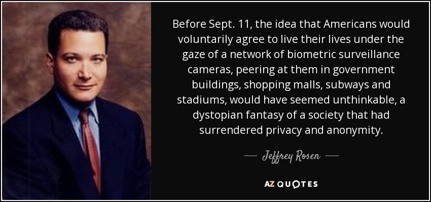 Before Sept. 11, the idea that Americans would voluntarily agree to live their lives under the gaze of a network of biometric surveillance cameras, peering at them in government buildings, shopping malls, subways and stadiums, would have seemed unthinkable, a dystopian fantasy of a society that had surrendered privacy and anonymity.