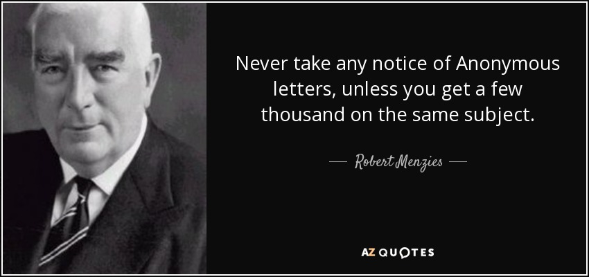 Never take any notice of Anonymous letters, unless you get a few thousand on the same subject.
