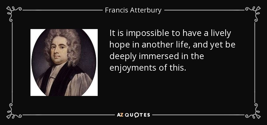 It is impossible to have a lively hope in another life, and yet be deeply immersed in the enjoyments of this.