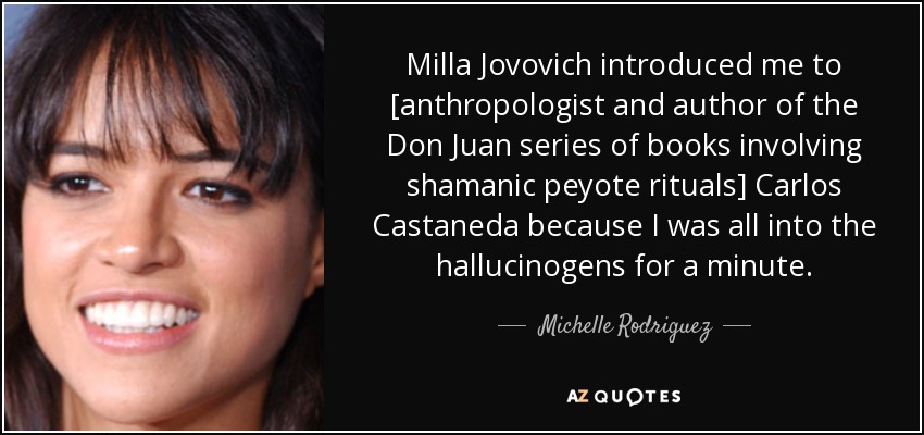 Milla Jovovich introduced me to [anthropologist and author of the Don Juan series of books involving shamanic peyote rituals] Carlos Castaneda because I was all into the hallucinogens for a minute.