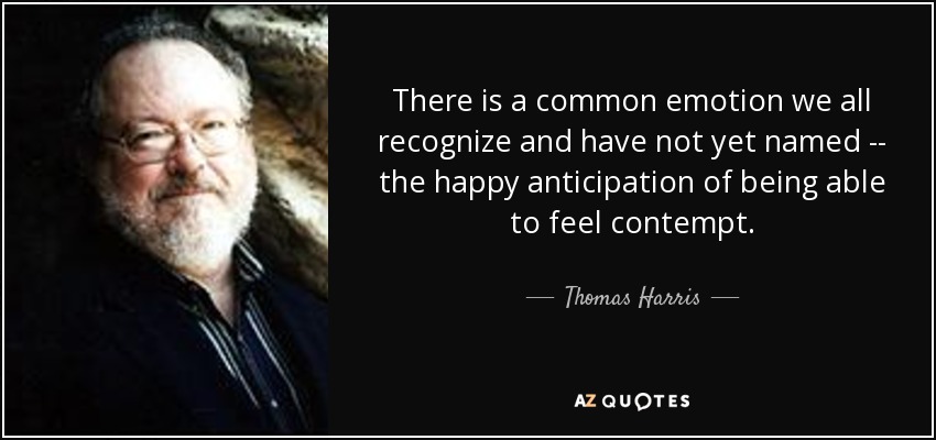 There is a common emotion we all recognize and have not yet named -- the happy anticipation of being able to feel contempt.